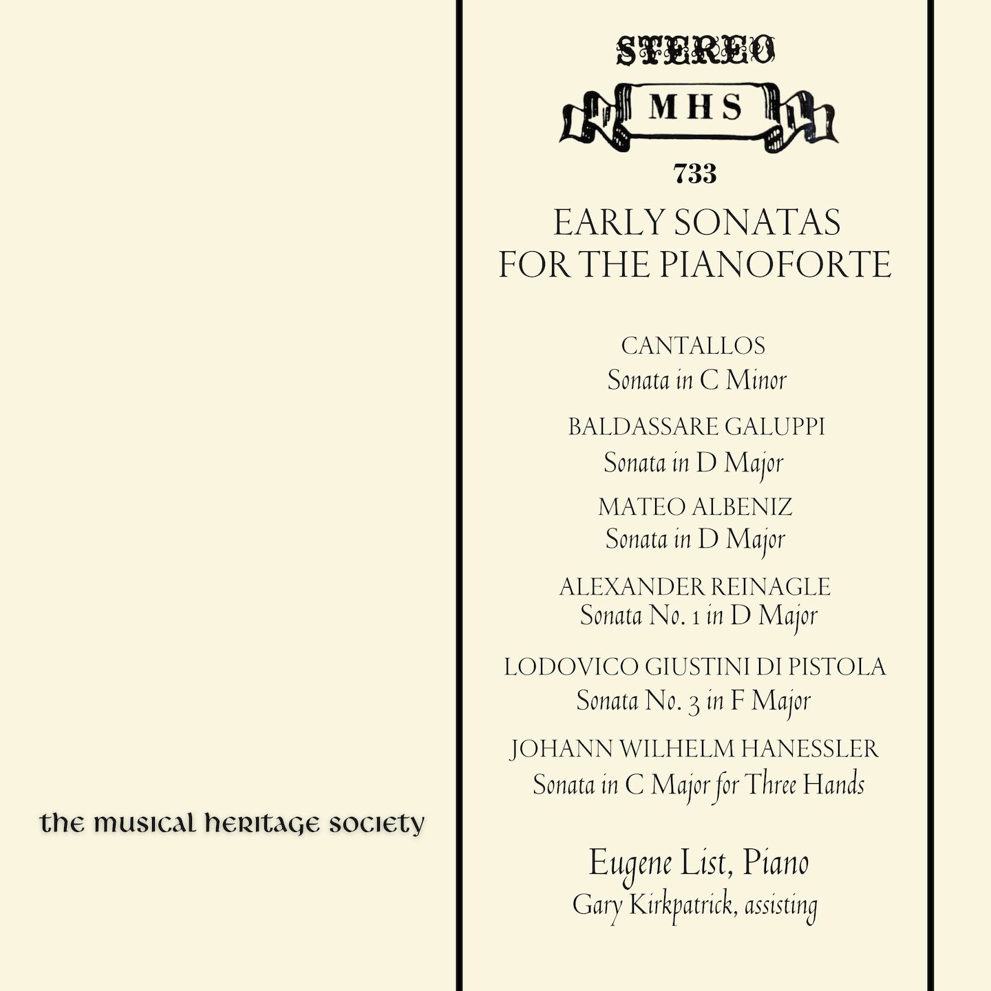 EARLY SONATAS FOR THE PIANOFORTE - Eugene List, piano