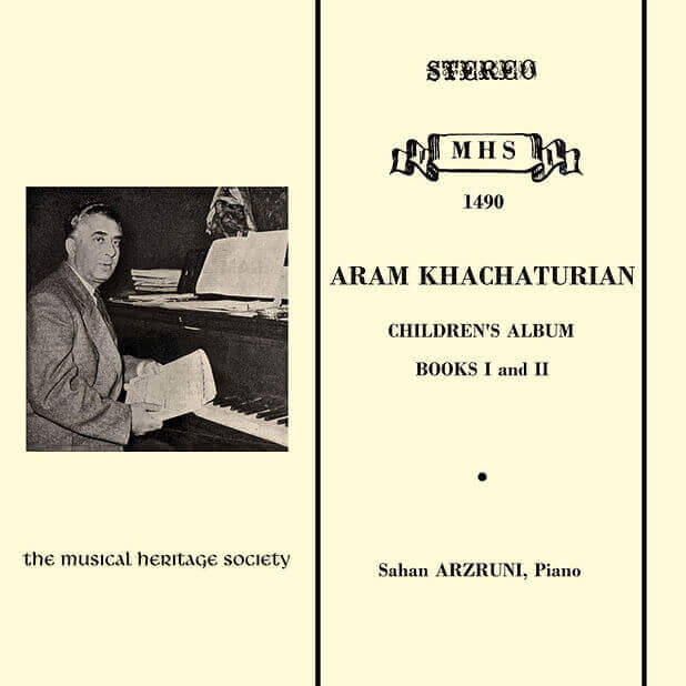 "Eem yerazheshdutyoones ghoshd eh." remarked Armenian composer Aram Khachaturian (1903-) , when I met him in early 1972. He says his music is coarse, straightforward and should be played without affected refinement. It is totally unpretentious, virile and strong. His emotions are to be projected without mannerism, in an uncluttered and completely unabashed way. The two albums recorded here give ample opportunity to sample Khachaturian's musical language and its attributes. Although composed for advanced youngsters, creatively they are sufficiently well-rounded to demand commitment from the listener. --from notes by Sahan Arzruni